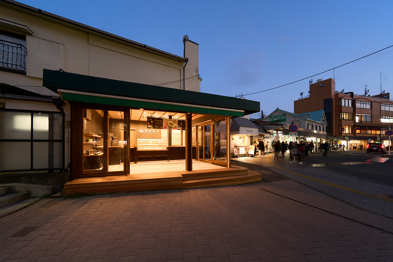 また、鎌倉という場所性そのものも重要な設計要素として捉えている。歴史ある街並みと穏やかな時間の流れを背景に持つこの土地において、店舗は単なる販売の場ではなく、日本文化の美意識へと触れるための入口であるべきだと考えた。大きく開かれた開口部によって街との連続性を保ちながらも、店内に足を踏み入れた瞬間、意識が自然と切り替わり、抹茶と向き合うための静かな集中が生まれる。その感覚の転換そのものが、この空間体験の本質のひとつとなっている。